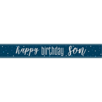 Navy Blue Happy Birthday Son Foil Banner 9 ft