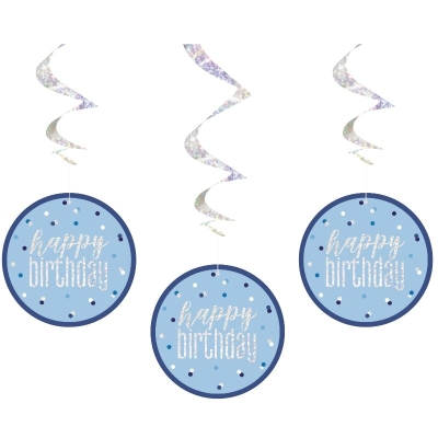 Blue & Silver Happy Birthday Hanging Decorations Pack of 6
