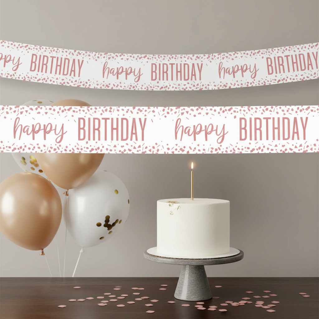 Rose Gold Happy Birthday Foil Banner 9ft